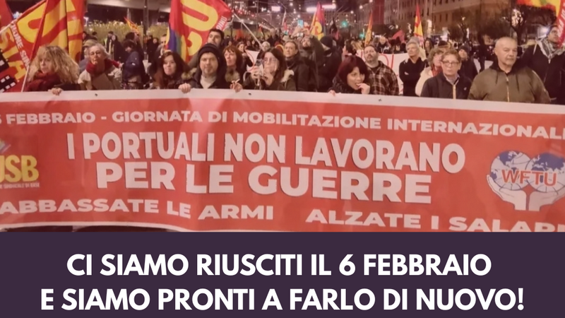 Il successo della Giornata internazionale di azione "I portuali non lavorano per la guerra" del 6 febbraio scorso, con scioperi e manifestazioni che hanno avuto luogo in oltre 20 porti europei in sette paesi del Mediterraneo, evidenzia la necessità di sviluppare ulteriormente azioni internazionaliste di solidarietà che prendano posizioni chiare e nette contro le guerre e i genocidi.