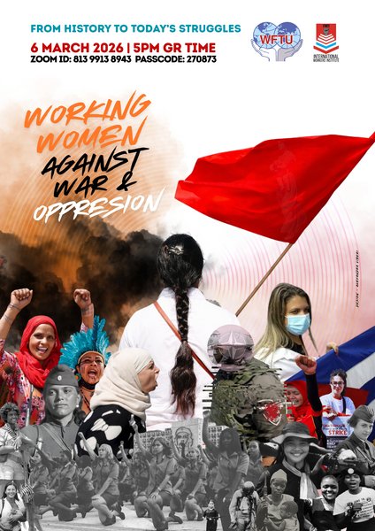 Questo dibattito mira a riaffermare il significato di classe dell'8 marzo, denunciare il ruolo del capitalismo e dell'imperialismo nella produzione della guerra e della repressione e rafforzare il coordinamento internazionalista delle donne lavoratrici organizzate nella WFTU.
